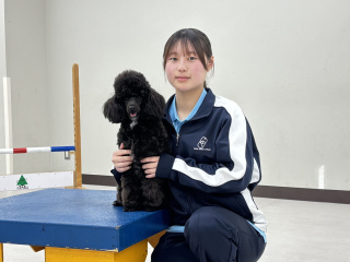 楽しみにしている実習は「動物行動実習」です。学校で学んだことを愛犬で実践したとき、少しずつですが成果が見られ大きなやりがいを感じました。現在は飼い主と愛犬に寄り添い、人と犬が安心して暮らせる環境づくりを支えられる存在になることを目標に、日々の勉強を頑張っています。 Iさん / 動物共生総合科 -