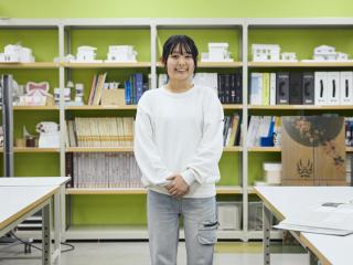 幼い頃から旅行先で神社仏閣を見学する機会が多く、そこから日本の建物に興味をもちました。修成では大学併修ができることを知り、専門学校で実践的な技術力を身に付けながら大学の学習にも取り組める点に大きな魅力を感じ入学を決意しました。私は高校から建築の勉強をしていたため、1年生の内に二級建築士試験に挑戦。修成の資格対策講座を受講し、二級建築士試験に合格することができました。将来は空き家問題や人口流出を改善できる建築士になり、個人事務所をもつことを目標にしています。 山﨑 梨花子さん / 建築学科
