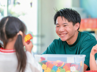 名古屋こども専門学校の隣にある、名古屋こども保育園で1歳児の担任をしています。授業で学んだ手遊びや絵本の読み聞かせが役立っています。保育士は大変なこともありますが、それ以上に魅力的なお仕事です。保護者の方に「来年度も先生に担任をして欲しい」と言ってもらえたときは本当に嬉しかったです。みなさんもぜひ、素敵な保育士をめざしてください。 山田 馨楠さん